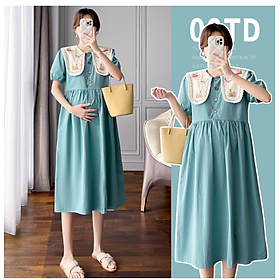 ✨ĐẦM BẦU VÁY BẦU CÔNG SỞ CỔ THÊU HẢI QUÂN sau sanh có nút mở cho bé ti