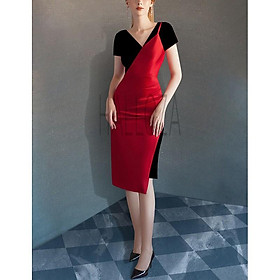 Đầm Ôm Đi Tiệc - tôn dáng kiêu sa - dáng đầm ôm tôn 3 vòng cơ thể từng đường nét - vai đắp xếp ly 1 bên cá tính - cổ tròn - tay sát