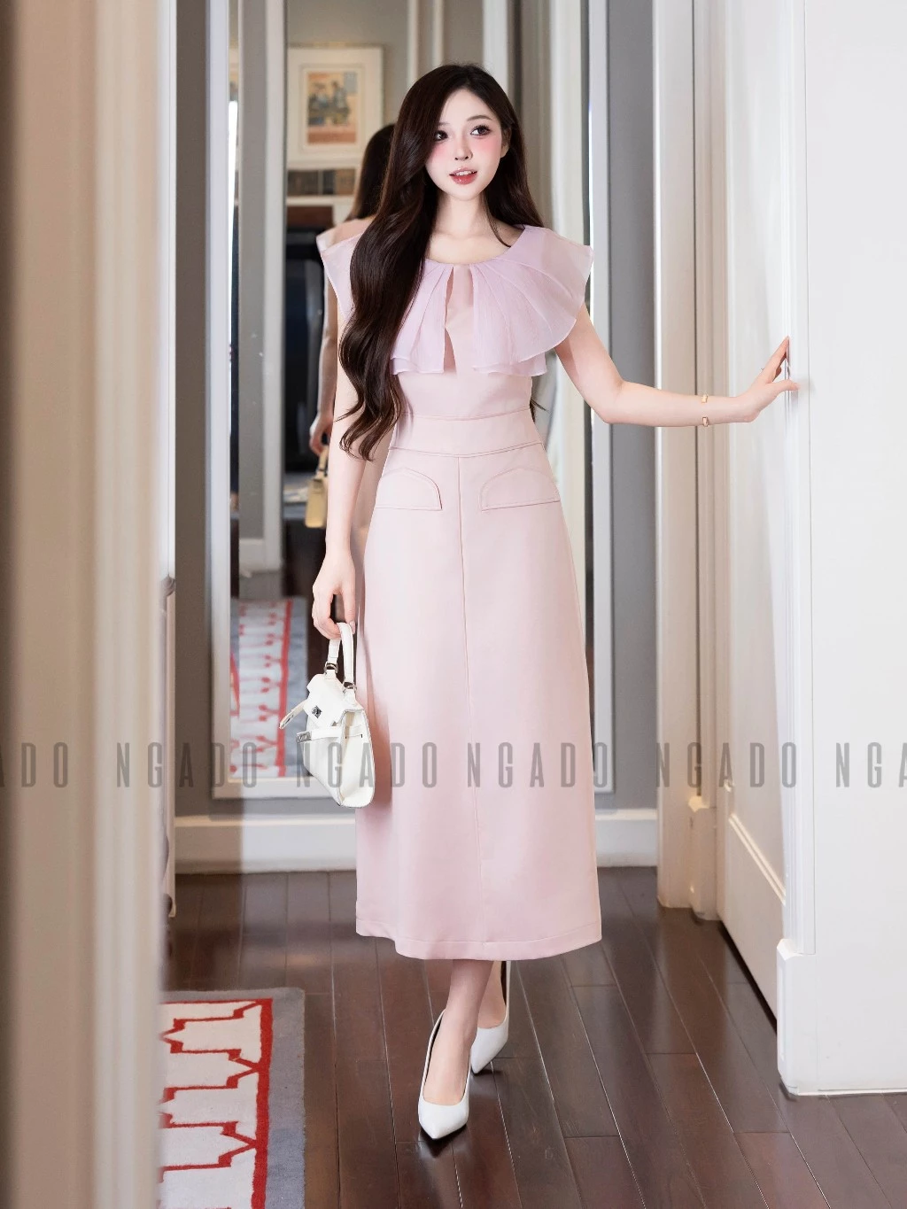 ✨Đầm hồng phối voan NGADO , đầm dự tiệc , đầm công sở
