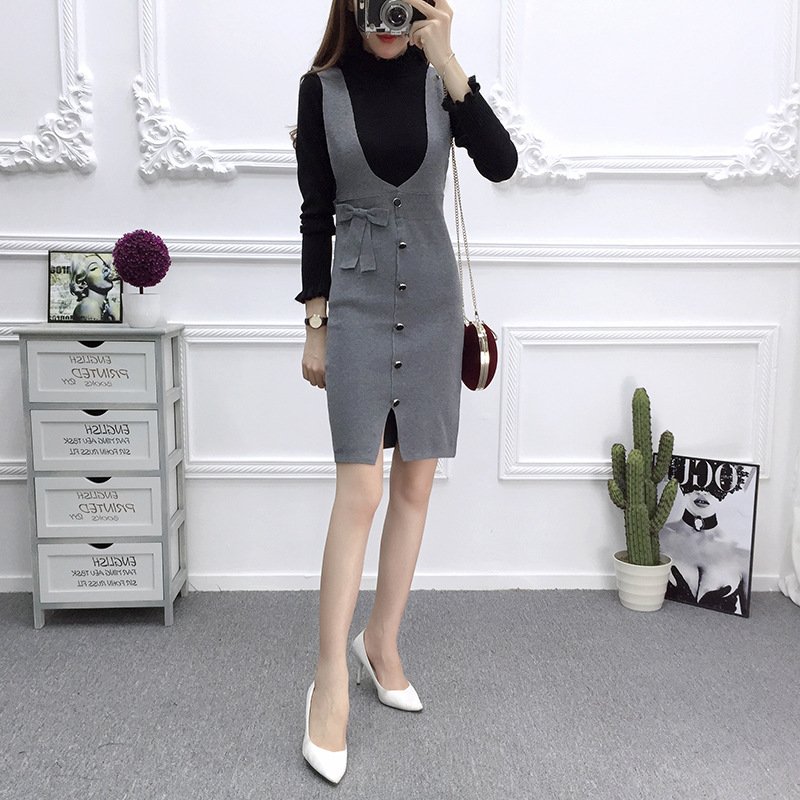 ✨Đầm len nữ , đầm yếm ôm body phối cúc xinh xắn AL103