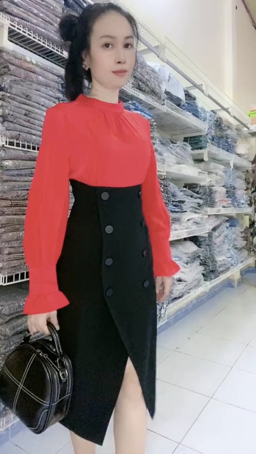 Mua tại TiktokĐầm xẻ tay kèn cao cấp trang nhã Mã: DZBS001 Màu: Đen + Đỏ Chất liệu: Acetate Số đo vòng1/vòng2(cm): 88/72