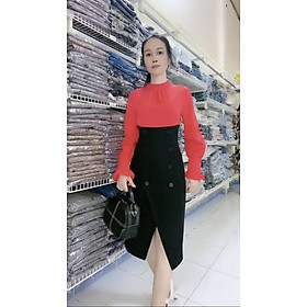 Đầm xẻ tay kèn cao cấp trang nhã Mã: DZBS001 Màu: Đen + Đỏ Chất liệu: Acetate Số đo vòng1/vòng2(cm): 88/72