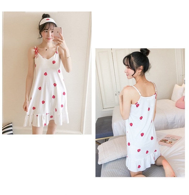 Ngoài ra, đầm ngủ màu sắc nhẹ nhàng được in hoa nhí đáng yêu nhìn bạn sẽ trở nên trẻ trung yêu đời hơn khi mặc trang phục này Chất liệu: đầm ngủ thiết kế