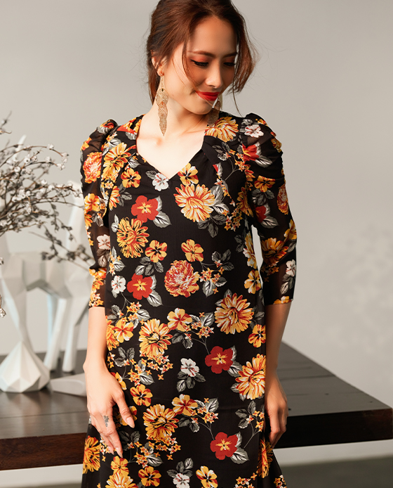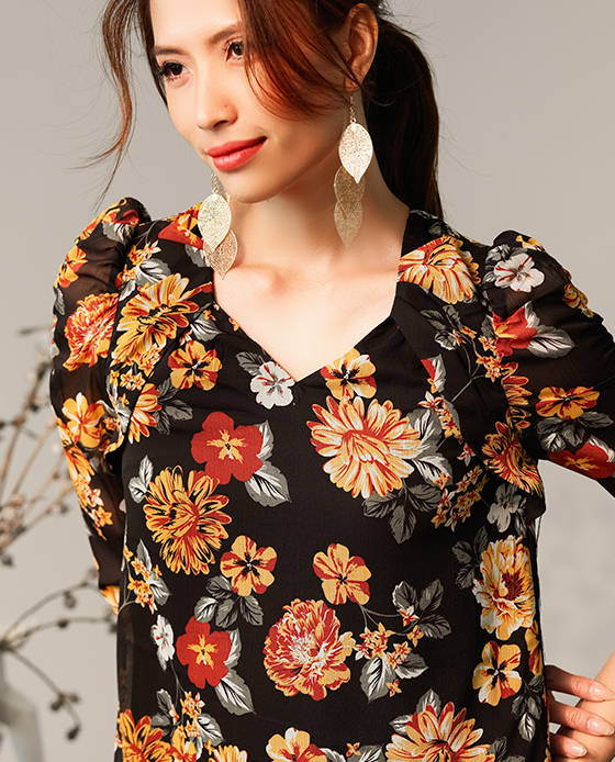 Chất: cotton lụa phối tay voan Màu: đen Kiểu dáng: đầm ôm, cổ vest, tay voan dài càu nút cổ tay, xẻ tà trước 2 bên, kèm nịt rời, dây kéo sau lưng Size: M