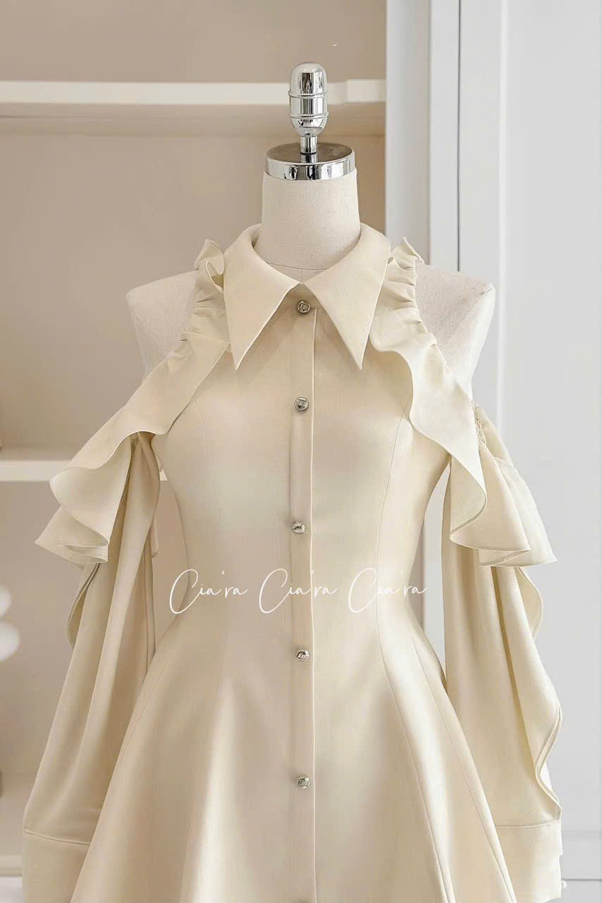 D4980] Váy thiết kế ren cúc bọc tay bồng pha chân tơ dáng dài Shop về 2 size S.M 2 màu trắng và kem Sản phẩm này là tài sản cá nhân được bán bởi