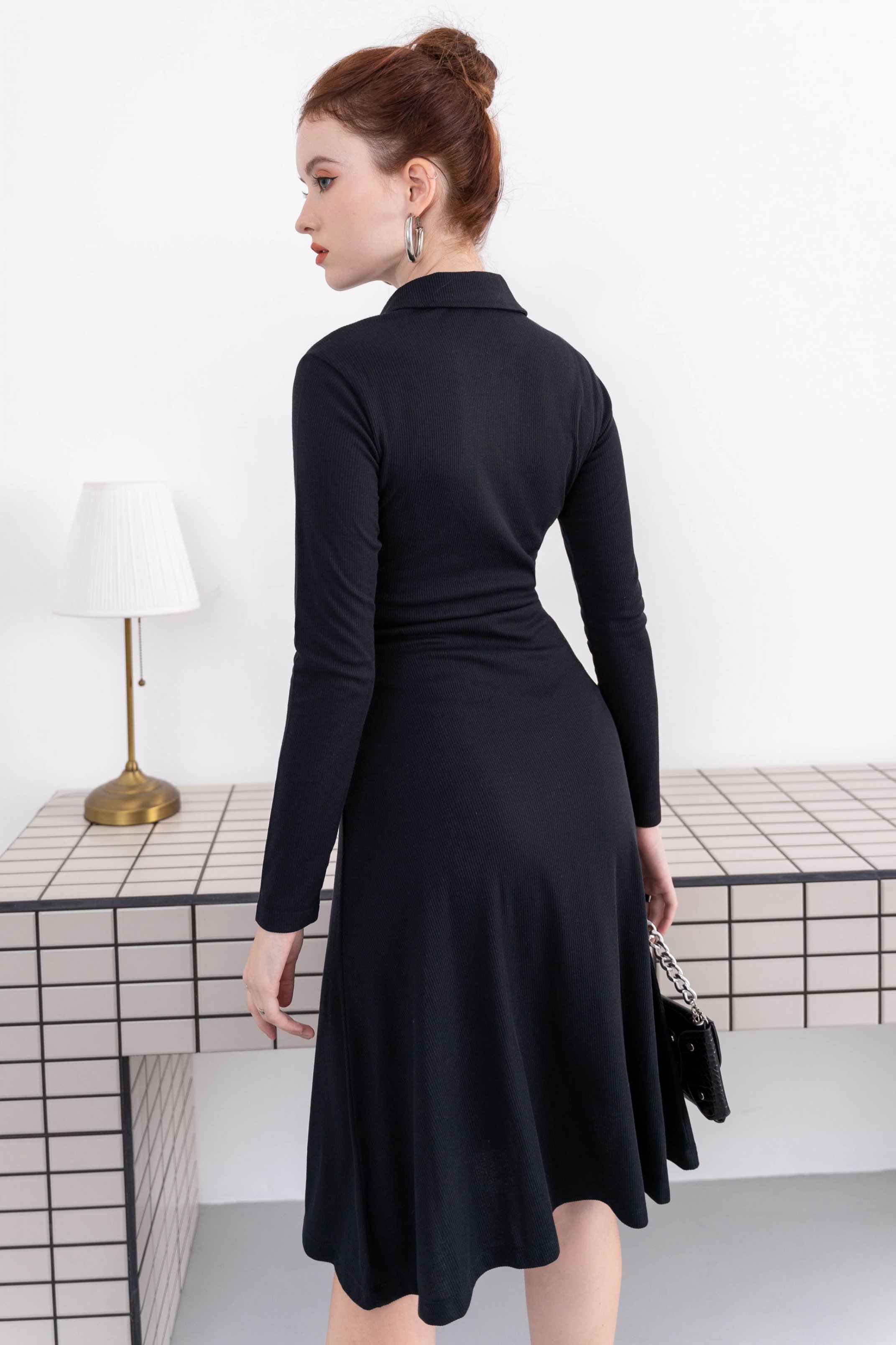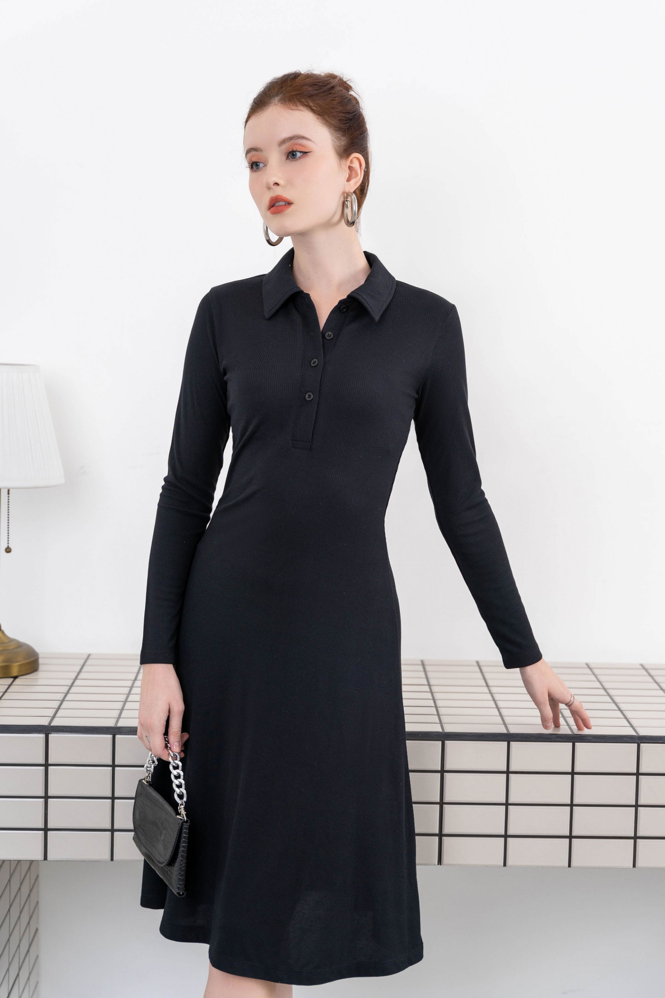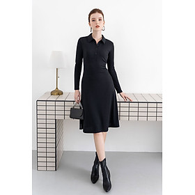 Mua tại TiktokCHẤT LIỆU BO GÂN SỚ NHỎ DÀY MỀM ĐẦM MÀU ĐEN, CỔ POLO NÚT GÀI FORM ÔM XÒE, TAY DÀI ĐẦM DÀI QUA GỐI ĐIỂM NHẤN LÀ CHIẾC NẸP ÁO DÀI VÀ TAG LOGO LAAS GẮN Ở LAI VÁY