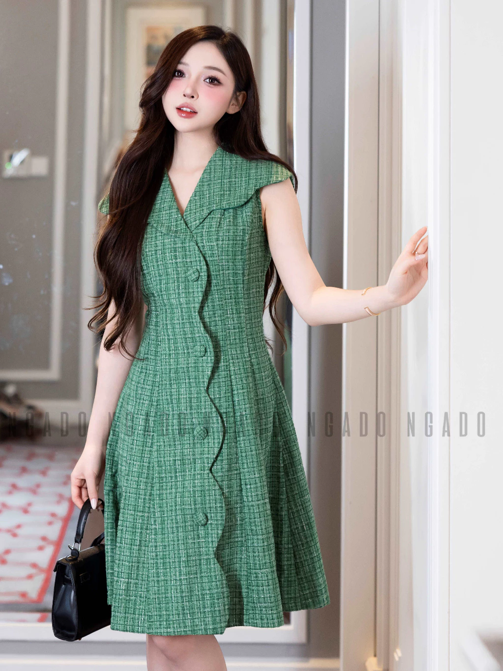 ✨Đầm tweed xanh cổ vest NGADO , đầm ngắn dự tiệc