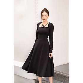 ✨Đầm xòe dài tay màu đen Crepuscolo Thiết kế cao cấp WHITE CHIC