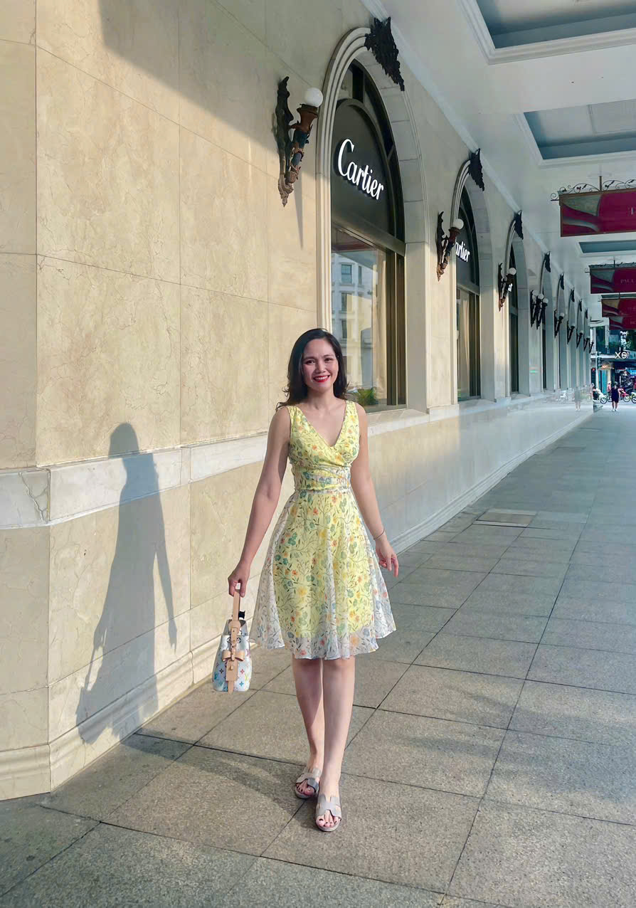 - Nghệ nhân cắt may: Lê Liên. Cắt may thủ công tinh tế tại Hity Atelier, Nha Trang, Việt Nam Như một tuyệt tác được vẽ nên từ những tia nắng vàng rực rỡ của miền nhiệt đới, "Bức Hoạ Mùa Hạ Soleil là bản tuyên ngôn cho vẻ đẹp nữ tính, thanh lịch và tràn đầy sức sống. Trên nền vải organza in hoạ tiết Soleil được Hity thiết kế độc quyền, sắc vàng citron tươi sáng hòa quyện cùng họa tiết hoa lá tựa như một khu vườn nở rộ đang khẽ lay mình trong gió. Mỗi chi tiết của thiết kế đều là một sự tính toán tinh tế: Cổ V khoét sâu vừa phải tôn lên chiếc cổ cao thanh tú, phần eo được chiết ly khéo léo để tạo nên vòng eo con kiến đáng mơ ước, và chân váy dáng A xoè nhẹ nhàng, bay bổng trong từng bước chuyển động. Đầm được kỹ lưỡng lót chất lụa mềm bay bổng khoan thai. Hãy tưởng tượng nàng thơ Soleil đang sải bước trên những con phố lát đá cổ kính, tham dự một buổi tiệc trà chiều sang trọng hay dạo bước trong một triển lãm nghệ thuật. Chiếc đầm sẽ là người bạn đồng hành hoàn hảo, giúp nàng tỏa sáng với khí chất nhẹ nhàng, sang trọng nhưng không kém phần cuốn hút. HƯỚNG DẪN SỬ DỤNG Giặt bằng tay với nước dưới 30°C, nước giặt dịu nhẹ có độ pH trung tính không chất tẩy. Ngâm đồ từ 30-60 phút, sau đó vò nhẹ bằng tay. Xả 3 đến 4 lần nước lạnh làm sạch, sau đó nhấc đồ ra và giũ nước. hông vắt hoặc xoắn mạnh tay để tránh làm giãn vải. Không sử dụng nước tẩy / thuốc tẩy Không được sấy bằng máy. Nhiệt độ và tác động quay của máy sấy có thể làm hỏng, co rút, hoặc biến dạng vĩnh viễn chất liệu vải. Tuyệt đối không ủi