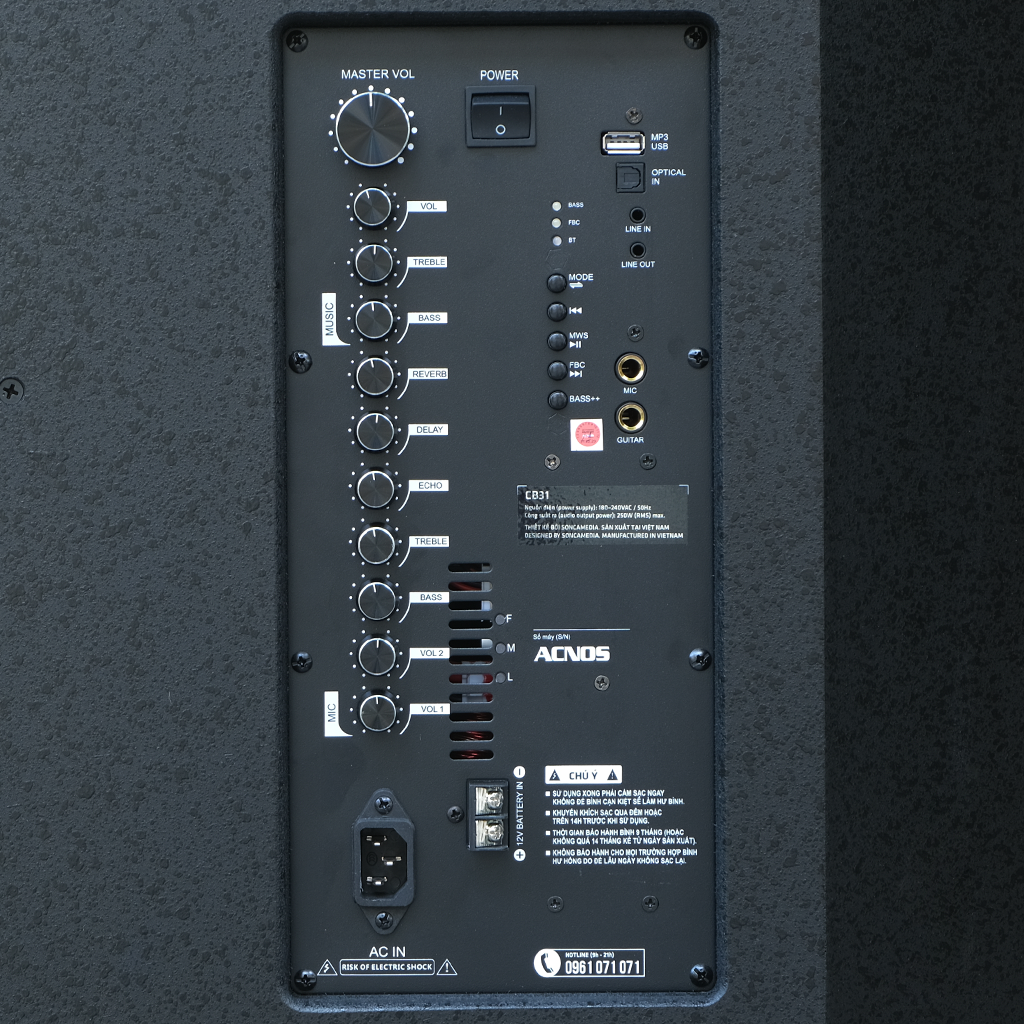 Dàn âm thanh di động ACNOS CB31, Loa karaoke di động ACNOS CB31 ĐẶC ĐIỂM NỔI BẬTChống hú di tần không làm giảm chất lượng âm thanhHiệu ứng Reverb đa kênh độc quyền của ACNOS giúp tiếng hát mượt mà...
