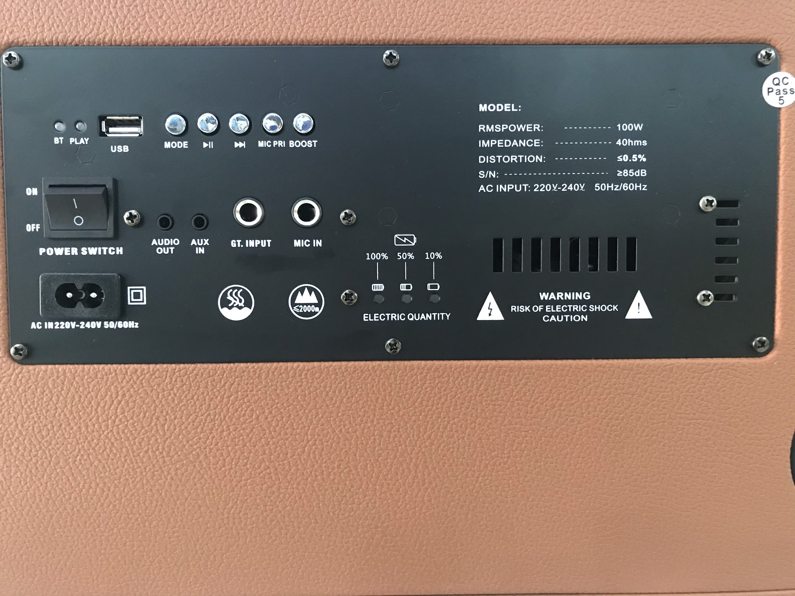 _Nguồn DC 12V bat in _ Bass 2T x 2, Treble x 2, mid x 2 _ Sử dụng bo CLASS D _Hỗ trợ USB, HDMI, Bluetooth, guitar in, mic in _Phụ kiện 2 mic