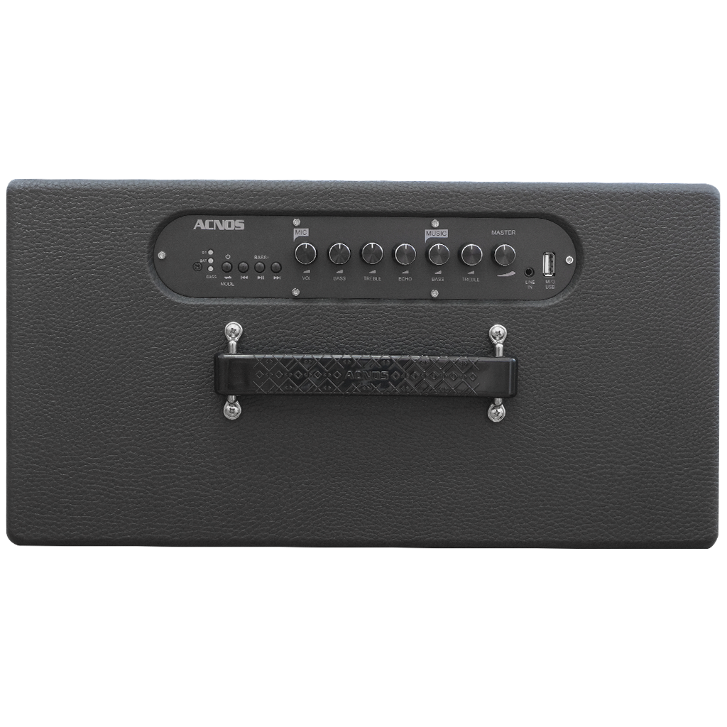 Dàn âm thanh di động xách tay ACNOS CS201PU, Loa karaoke di động xách tay ACNOS CS201PU   ĐẶC ĐIỂM NỔI BẬT - Tích hợp bộ nâng tiếng nghe nhạc hay hơn - Chống hú di tần không làm giảm chất lượng âm thanh - Hiệu ứng Reverb đa kênh độc quyền giúp tiếng hát mượt mà - Tích hợp vang số chỉnh cơ - Chức năng boost bass dành riêng cho nhạc sàn sôi động - MWS - Nối cặp không dây 2 loa thành 1 để nghe nhạc Stereo & hát karaoke   THÔNG SỐ KĨ THUẬT - Màu sắc : Màu đen - Thùng gỗ bọc da - Màu lưới : lưới xám - Logo : KBEATBOX - Bluetooth 5.0 - Nguồn cấp : Adapter 17.5VDC-3A max - Input : 110~240VAC, 50~60Hz (auto volt) - Pin Li-Ion : 15V – 2.2AH (33WH) - Hệ thống loa : loa BASS 20CM (8") + loa TREBLE - Công suất RMS : 70W (max)