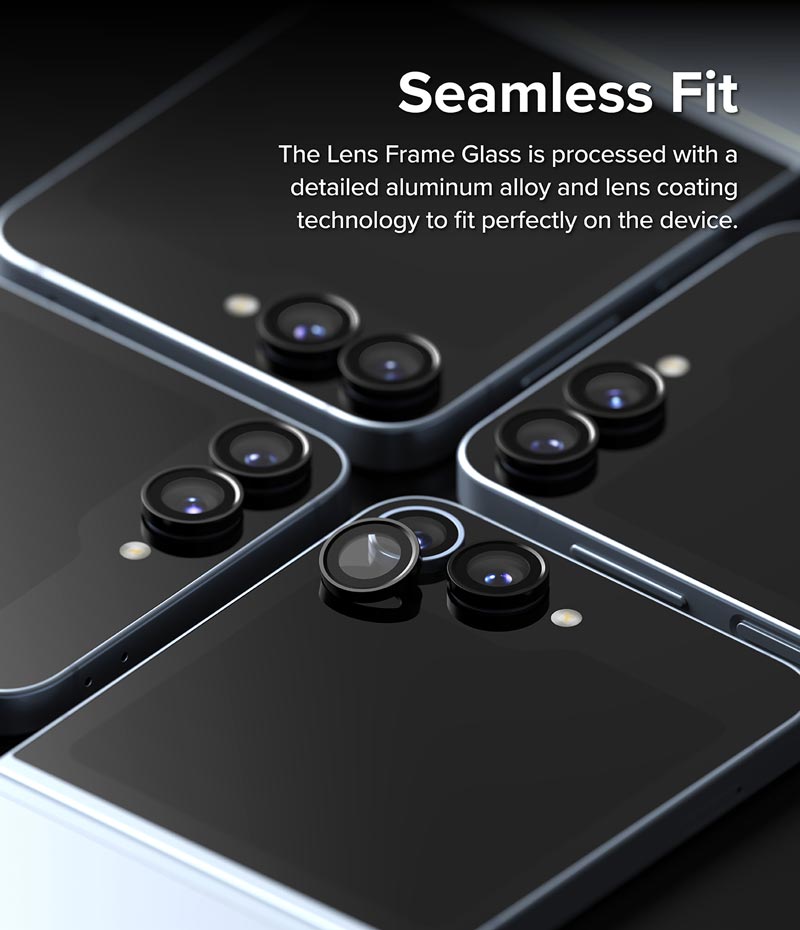 Dán camera Samsung Galaxy Z Flip 6 RINGKE Lens Frame Glass gồm 2 lens rời, chất liệu kính cường lực trong suốt với khung viền kim loại màu đen bảo vệ tối ưu cho camera,