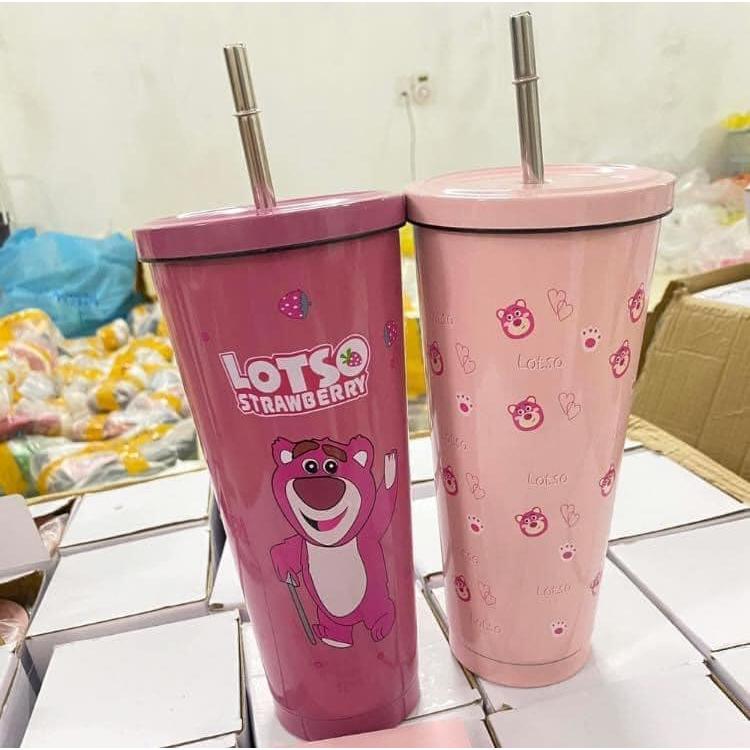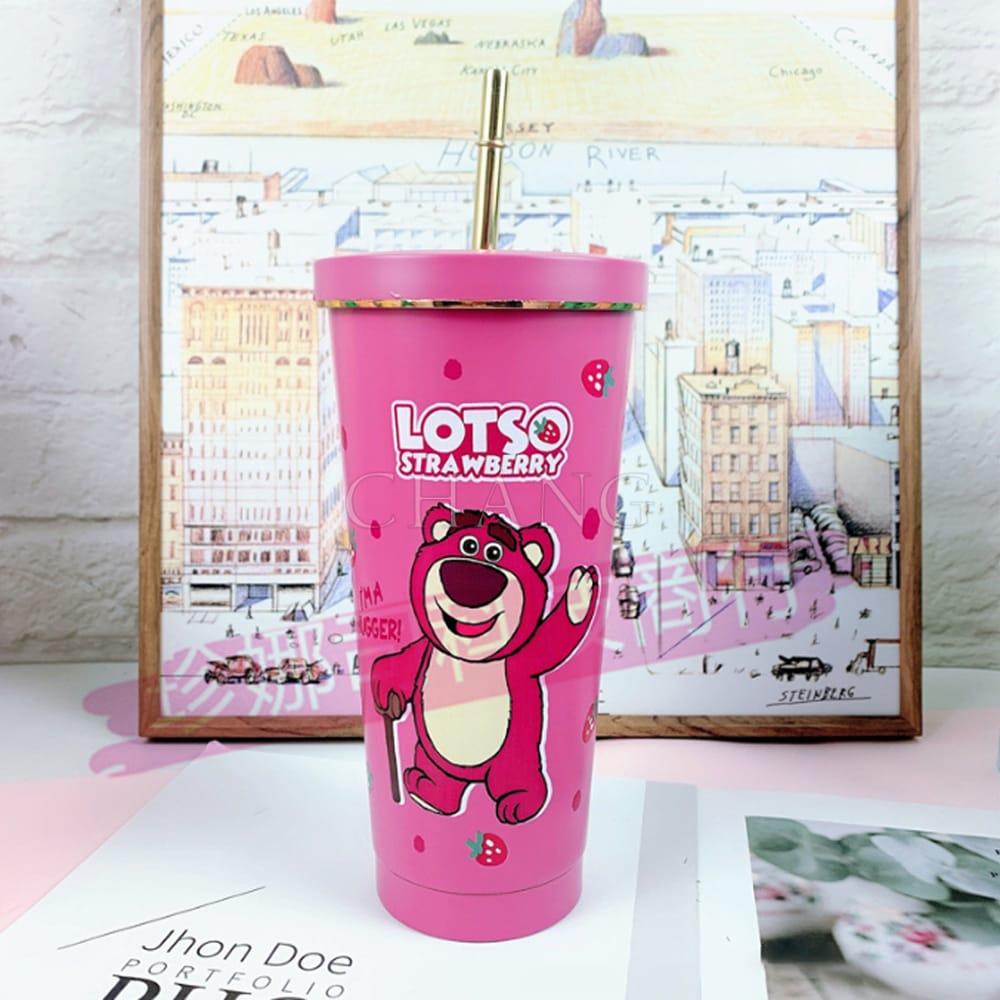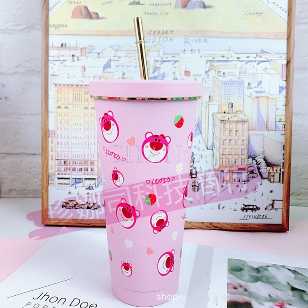 Ly Giữ Nhiệt Gấu Dâu 750ML, Bình Giữ Nhiệt Inox 304 Tặng Kèm Ống Hút » Kích thước: Lớn: đường kính đáy:6.8cm x chiều cao: 20.8cm » Chất liệu: » Thân: bên trong là thép