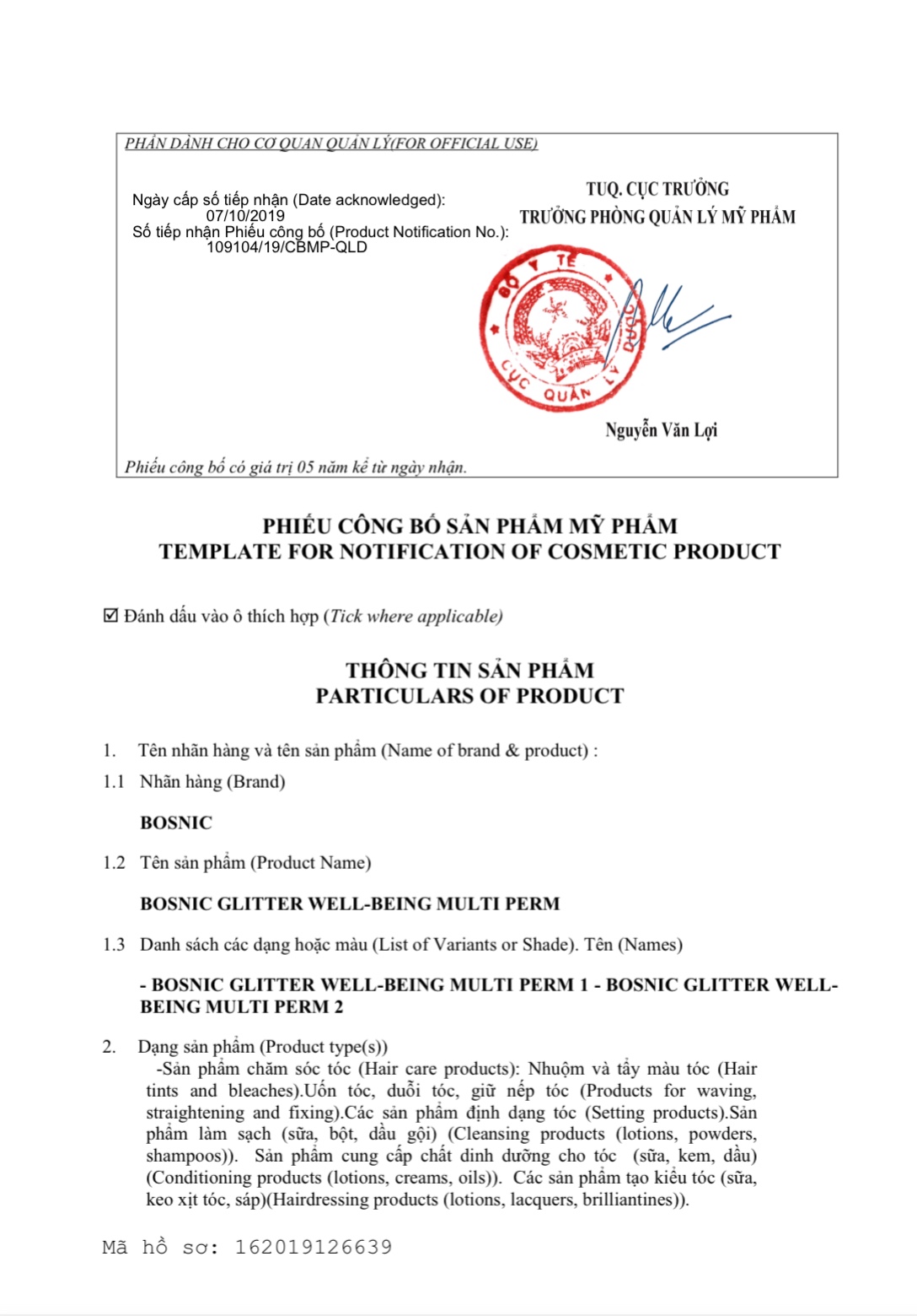 - Chứa Polyme ion dương và Axit amino tăng khả năng làm ẩm lên 2 lần. ***Quy trình sử dụng: Bước 1: Thẩm định sợi tóc. Bước 2: Gội sạch, sấy vừa khô. Bước 3: Bắt từng nếp tóc, bôi thuốc chai số 1, quấn ống. Bước 4: Chờ thuốc thẩm thấu 20-25 phút thì dập trực tiếp chai số 2, để thêm 15 phút Bước 5: Xả sạch. Kết thúc quá trình.