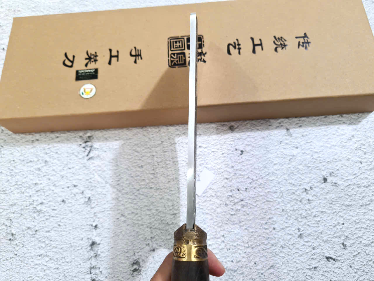 - Chức năng: chuyên chặt thái cá, chặt gà, lọ - Kích thước: Lưỡi: 26cm, cán: 12,5cm, rộng: 6,5cm, dầy: 4ly, trọng lượng: 480g - Cán : Gỗ mun , Khâu và chốt đồng đỏ