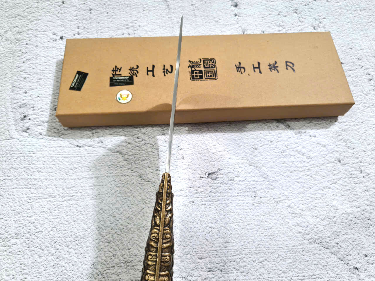 Dao Phúc Sen Dao Bầu 22 Cán Cẩm Khâu Đồng G10D - Kích thước: lưỡi: 20-22cm, cán: 13cm, rộng: 7,5cm, dầy: 1,5ly, trọng lượng: 300g - Chức năng: sử dụng chuyên thái lọc thịt ,cá,