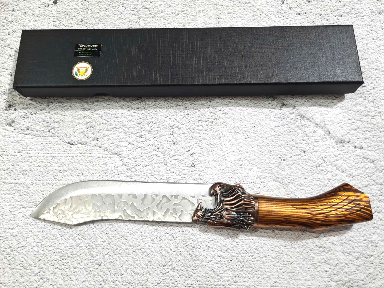 D SỐ 4 : TỔNG DÀI : 32cm, LƯỠI: 18cm,RỘNG : 4.5cm, dày: 3mm, NẶNG : 2.3 lạng, CHẤT liệu lưỡi: 4Cr13MOV (thép 4 crom 13 molypden vanadi).Chất liệu CÁN: nhựa abs xịn . khâu đầu rồng và chuôi bằng thép 4cr13