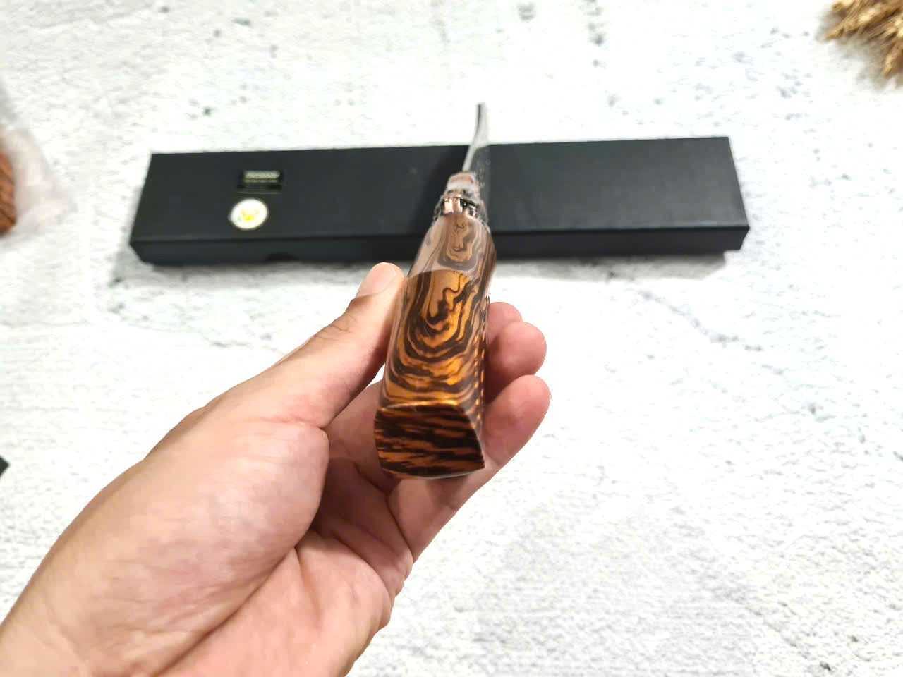 • Chất liệu: Thép Nhật 420J2, độ cứng 53HRC – siêu bền, chống gỉ • Lưỡi dao: Dày 2.5mm, sắc bén, hoàn thiện bằng đá mài nước • Tay cầm: Gỗ Pakka sang trọng, chống