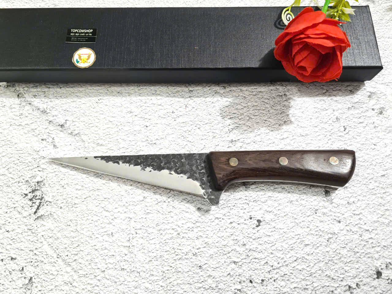 • Chất liệu: Thép Nhật 420J2, độ cứng 53HRC – siêu bền, chống gỉ • Lưỡi dao: Dày 2.5mm, sắc bén, hoàn thiện bằng đá mài nước • Tay cầm: Gỗ Pakka sang trọng, chống
