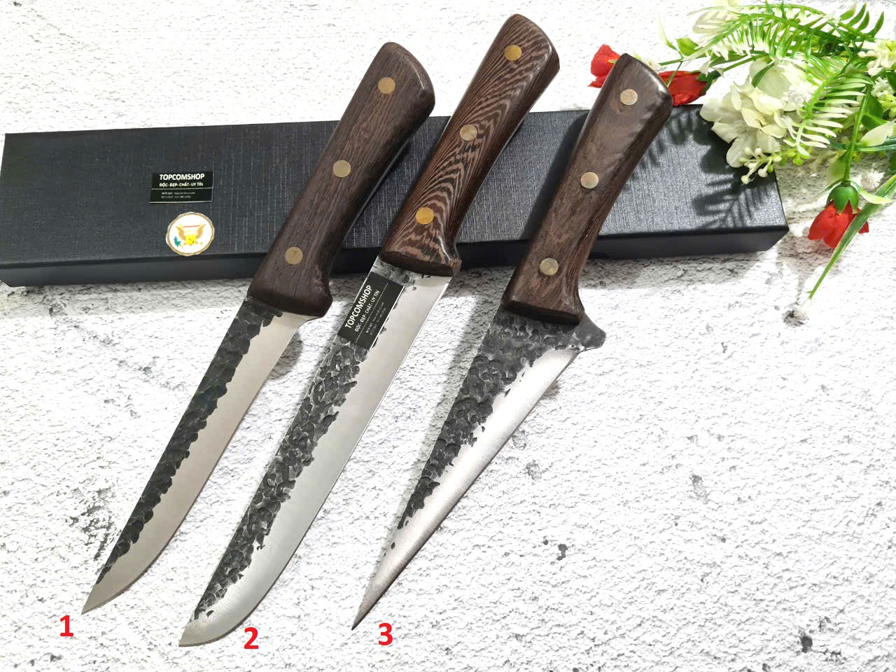 D SỐ 3 : TỔNG DÀI : 26cm, LƯỠI: 13cm,RỘNG : 3.5cm, dày: 2.5mm, CHẤT liệu lưỡi: 5Cr15MOV (thép 5 crom 15 molypden vanadi) Chất liệu CÁN: gỗ Cánh gà, NẶNG : 1.5 lạng