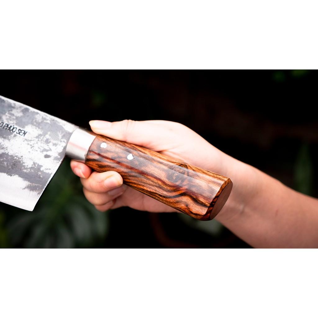 Dao Phúc Sen - Dao chặt xương 5ly - Chất liệu: 100% thép nhíp ô tô được lựa chọn và kiểm duyệt kỹ càng. - Chất liệu cán: gỗ cẩm chỉ núi - Kích thước: