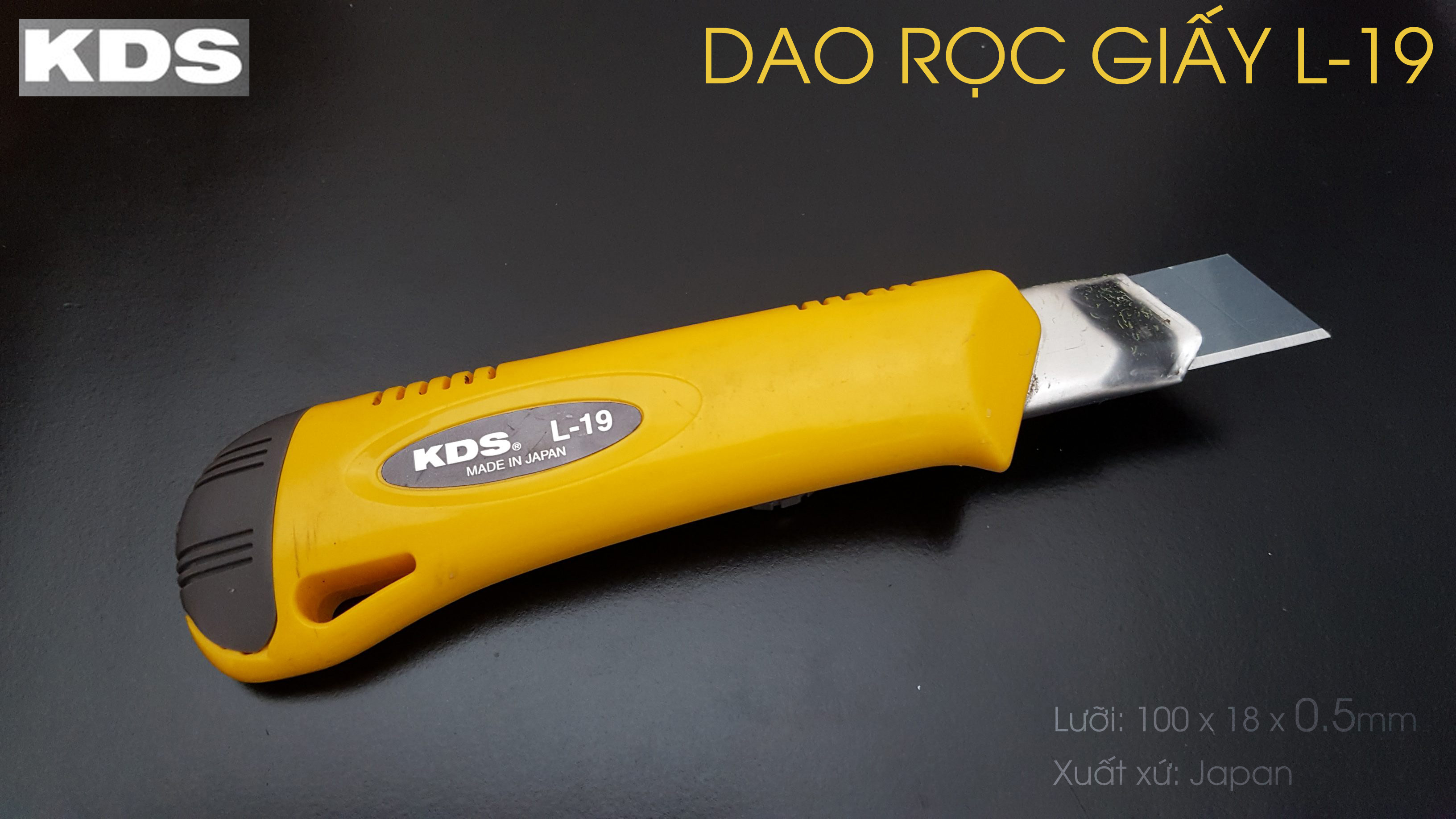 • Dao rọc giấy khóa xoay KDS L-19 đạt tiêu chuẩn chất lượng Công Nghiệp Nhật (JIS). Được thiết kế tinh tế và chú trọng sự an toàn với lưỡi dao được lồng vào trong cán cầm, khi không sử dụng bạn có thể trượt lưỡi dao vào bên trong, đảm bảo an toàn cho bản thân và mọi người. Giúp bạn làm việc cực kỳ an toàn không ảnh hưởng đến người lao động.