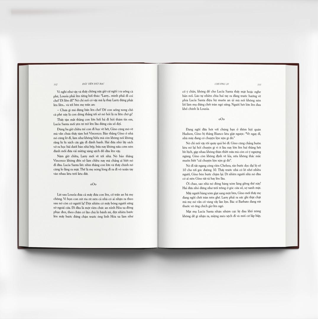 “Nếu người đọc Bố già thấy hào hứng ở những cảnh bắn giết máu óc tùm lum ở mỗi trang sách, mới đi sâu vào hai xã hội bí mật nhất và bẩn nhất Mỹ quốc là Mafia và Hollywood thì đọc Đất tiền đất bạc sẽ ngạc nhiên vì cùng một tác giả Mario Puzo mà không thấy súng nổ loạn, chỉ thấy cám cảnh vì con người tranh ăn để sống! Cho tới bây giờ ông mới viết có hai truyện The Godfather và The Fortunate Pilgrim mà như tên gọi, con người đói quá bèn rủ nhau đổ xô sang Mỹ ‘hành hương’. Họ đâu cần tìm đạo, tìm triết lý mà chỉ đ tìm tiền! Đúng hơn là đi kiếm miếng sống, cho khỏi đói. Nhưng không chết đói là họ lại đòi no nữa. Họ lại muốn làm giàu, thật nhiều thật lẹ dù đồng tiền có bẩn và nếu cần còn phải triệt hạ đồng loại, nhiều khi còn đồng bào!
