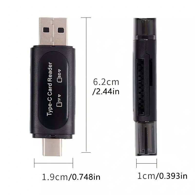 1. Input: USB-C 3.0 male 2. Output: 1×SD card slot, 1×TF card slot, 1× USB-A 2.0 3. USB-A standard: USB 2.0 standard can theoretically transfer data at a very high 480Mbps 4. Supported memory cards: