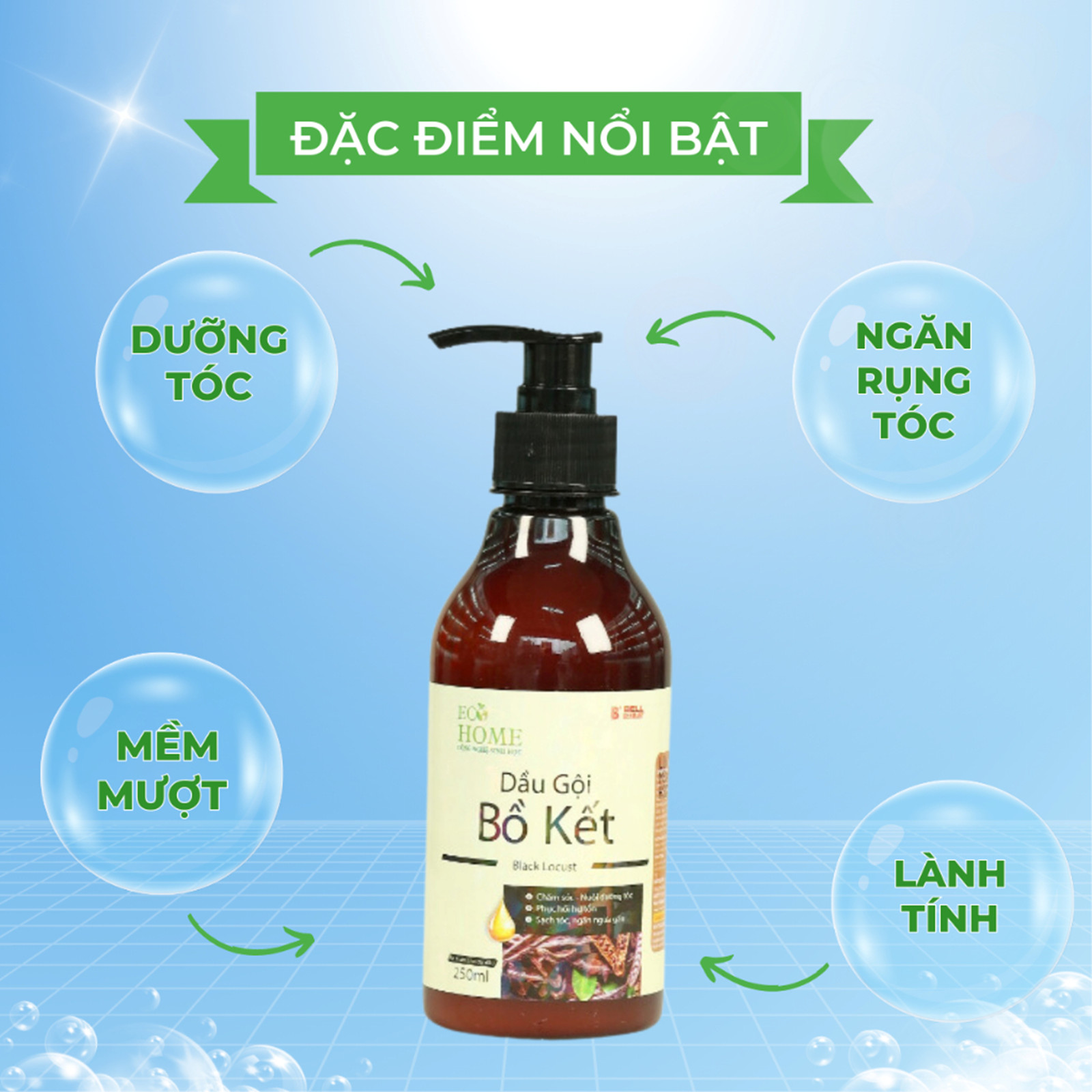 Dầu Gội Đầu Chiết Xuất Bồ Kết Công Nghệ Sinh Học ECOHOME 250ml Giúp Tóc Dưỡng Ẩm Mượt Mà Hương Thơm Lâu