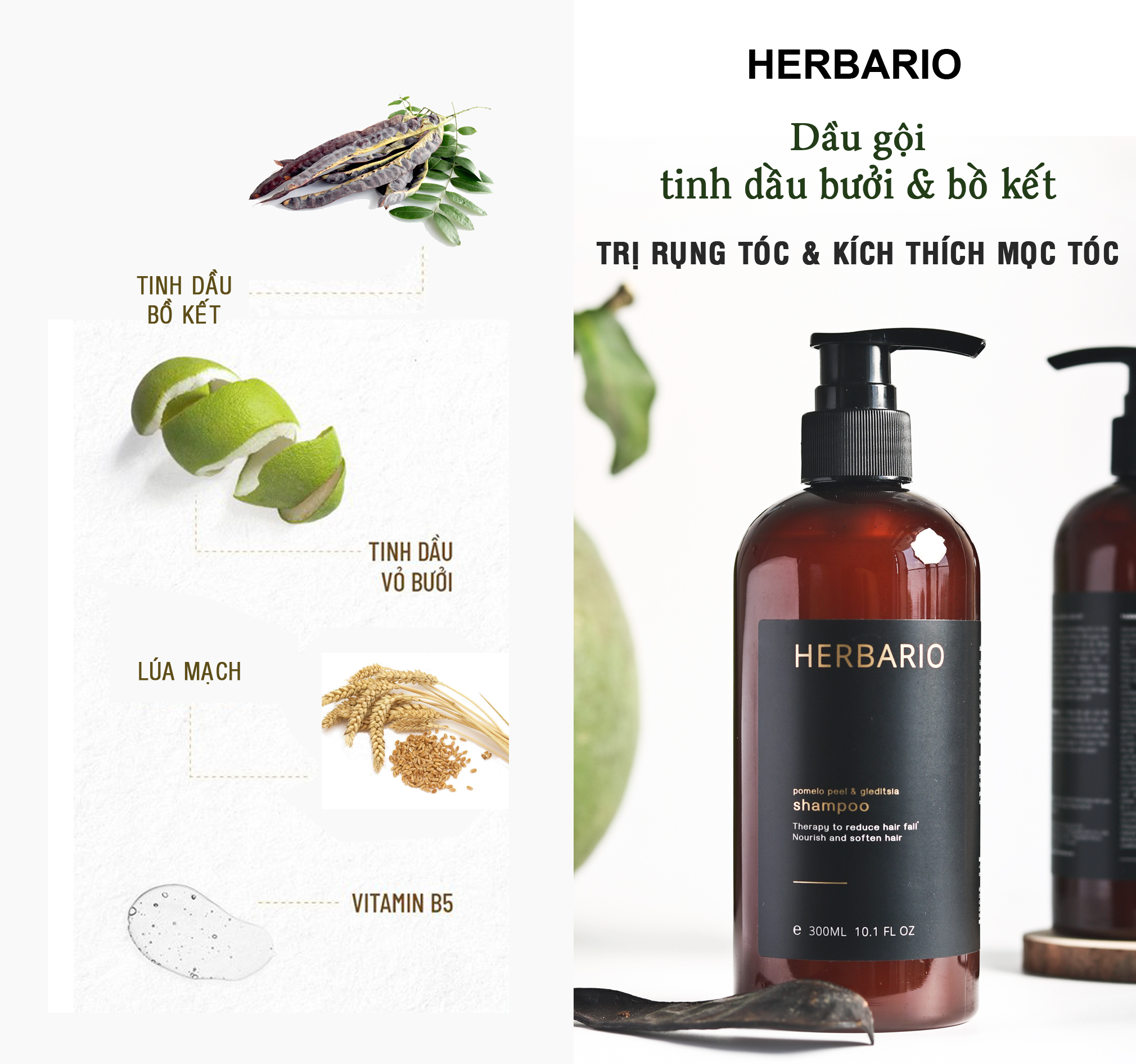 Thành phần đầy đủ dầu gội bưởi & bồ kết herbario: