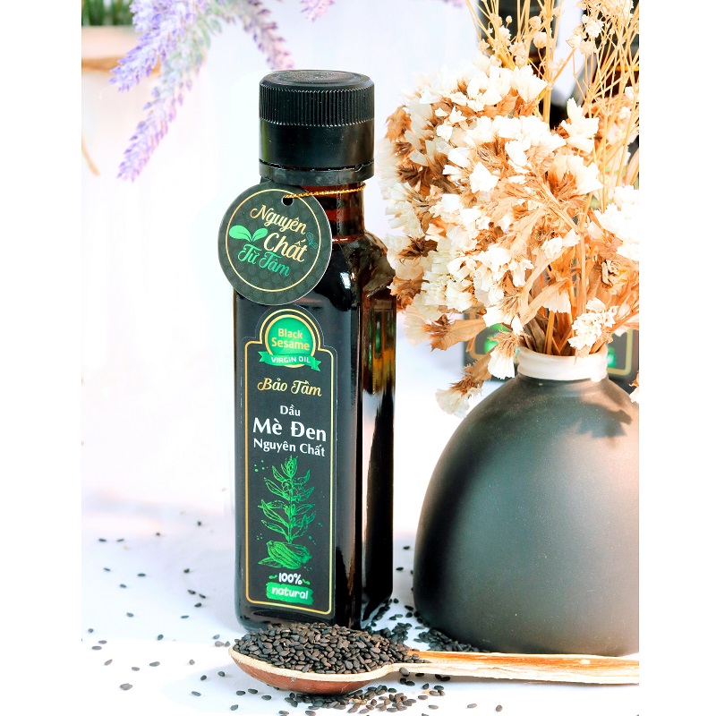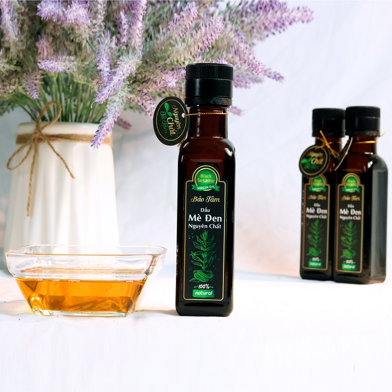 ✨Dầu Mè Đen Nguyên Chất Bảo Tâm (Dầu Mè Nguyên Chất, Dầu Vừng Đen Nguyên Chất) – Sản xuất từ Hạt Mè Đen Thuần Chủng Tự nhiên, Cao cấp - Nấu Canh, Trộn Salad, Cho bé Ăn Dặm - Hàng Chính Hãng – 120 ml