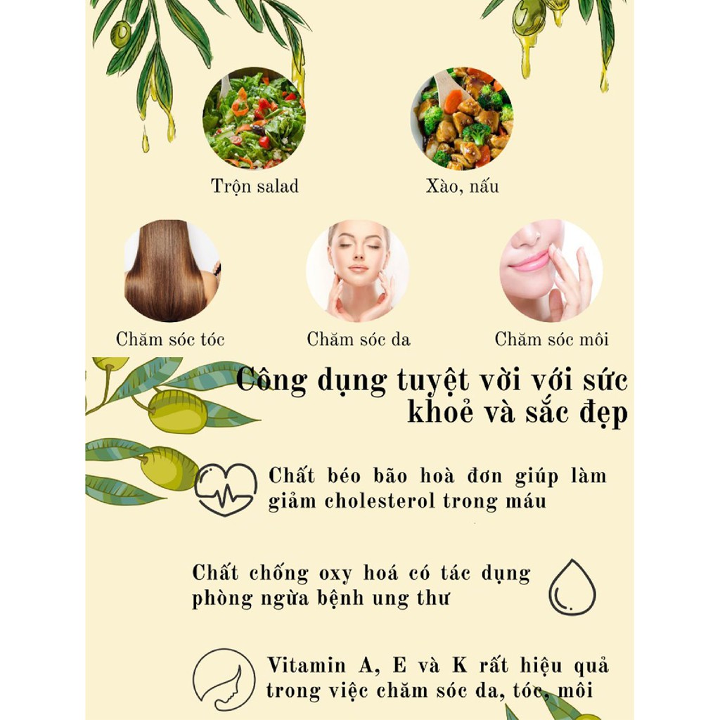 - Dầu Olive Nguyên Chất 100% Ajinomoto Extra Virgin (200G) góp phần tăng thêm hương vị thơm ngon cho bữa cơm gia đình mà còn vì sức khỏe cho con người, chính vì thế, Ajinomoto