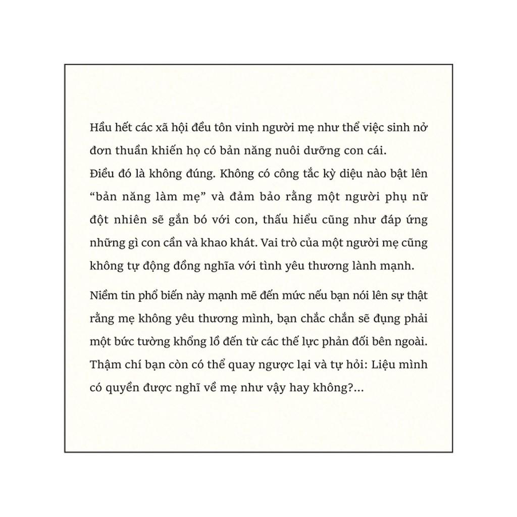 Hầu hết các xã hội đều tôn vinh người mẹ như thể việc sinh nở đơn thuần khiến họ có bản năng nuôi dưỡng con cái. Niềm tin phổ biến này mạnh mẽ đến mức nếu bạn nói rằng mẹ không yêu thương mình, bạn chắc chắn sẽ đụng phải một bức tường khổng lồ đến từ các thế lực phản đối bên ngoài. Thậm chí bạn còn có thể quay ngược lại và tự hỏi: Liệu mình có quyền được nghĩ về mẹ như vậy hay không?...