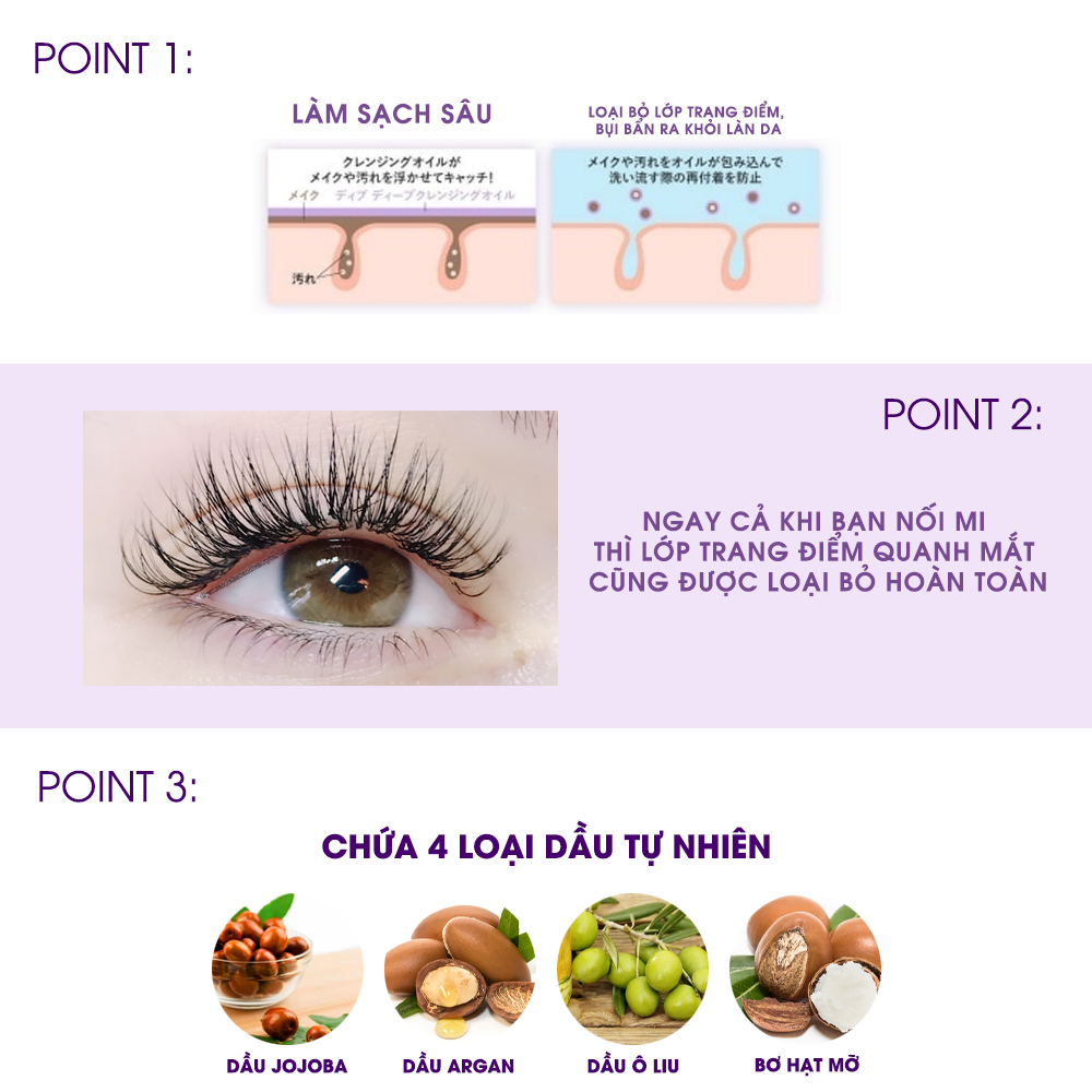 - Dầu Tẩy Trang DHC Deep Cleansing Oil (SS) (70ml) giúp rửa sạch các lớp trang điểm, đánh bay bụi bẩn cứng đầu, bã nhờn cũng như tế bào chết mà KHÔNG để lại cảm giác
