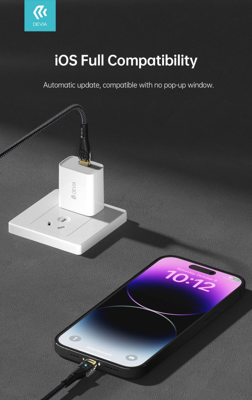 Thiết kế tối giản với độ dài 1.2m tương thích nhiều thiết bị, có thể đáp ứng hầu hết những nhu cầu sử dụng hàng ngày Công suất tối đa 30W với màn hình hiển