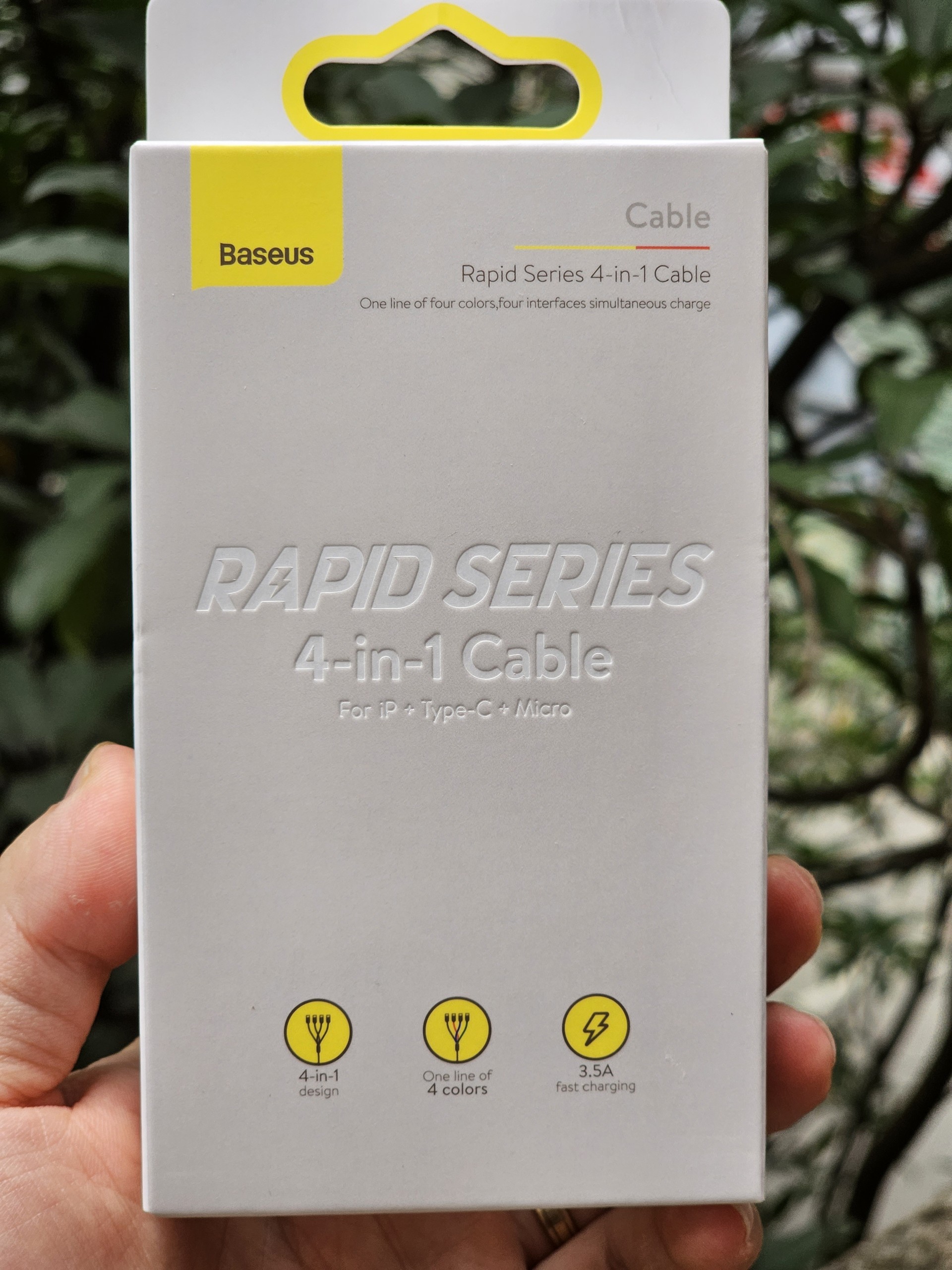 Giới thiệu sản phẩm Cáp sạc đa năng 4 trong 1 cho điện thoại/ I-pad CA1T4 3.5A Baseus Rapid Series 4 in 1 cable (3.5A, 1.2M, for I-phone, Type-C, Micro, Fast charge 4 in 1 Cable) 2