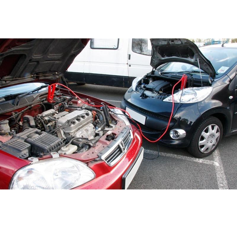 Kết nối đầu kẹp màu đỏ còn lại (+) của cáp với cực dương của acquy tốt.