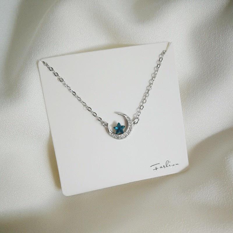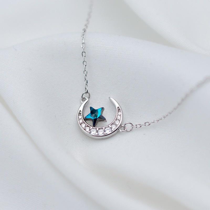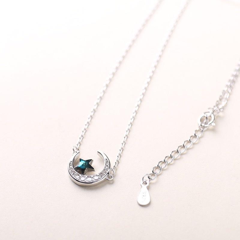 Dây chuyền bạc hình trăng khuyết sao xanh cực kì nữ tính nhẹ nhàng. Dây chuyền mang phong cách Hàn Quốc thời trang, nữ tính nhưng thực sự là mẫu dành cho những cô nàng trendy.