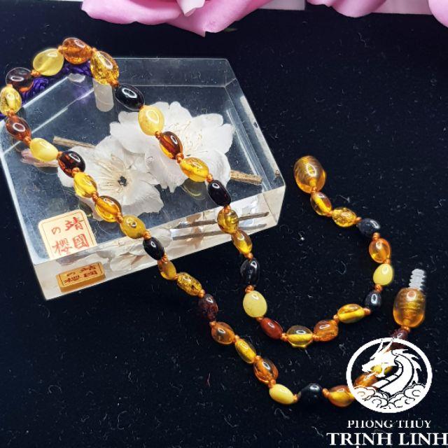Bộ hổ phách, chuỗi amber thiên nhiên, chuỗi hạt cho bé, đá hổ phách hỗ trợ mọc răng