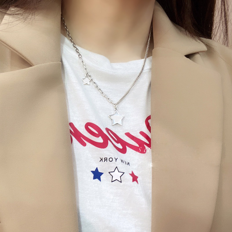 ✨Dây chuyền ngôi sao kép bất đối xứng nam nữ xu hướng thời trang mới