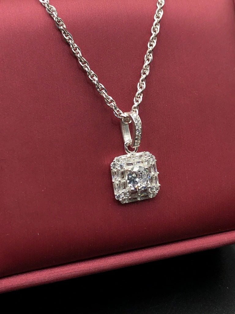 ✨Dây Chuyền Vòng Cổ Bạc Ta Dây Xoắn Kép Và Mặt Vuông Đính Đá Cao Cấp BẠC HIỂU MINH DMD479