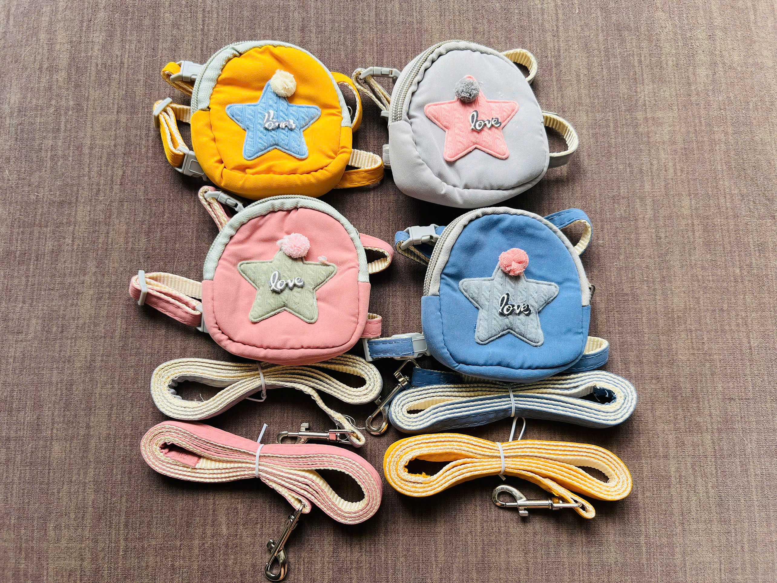 Thiết kế : Dây dắt, dây xích, balo siêu dễ thương cho chó mèo cưng. Balo có hình ngôi sao siêu dễ thương