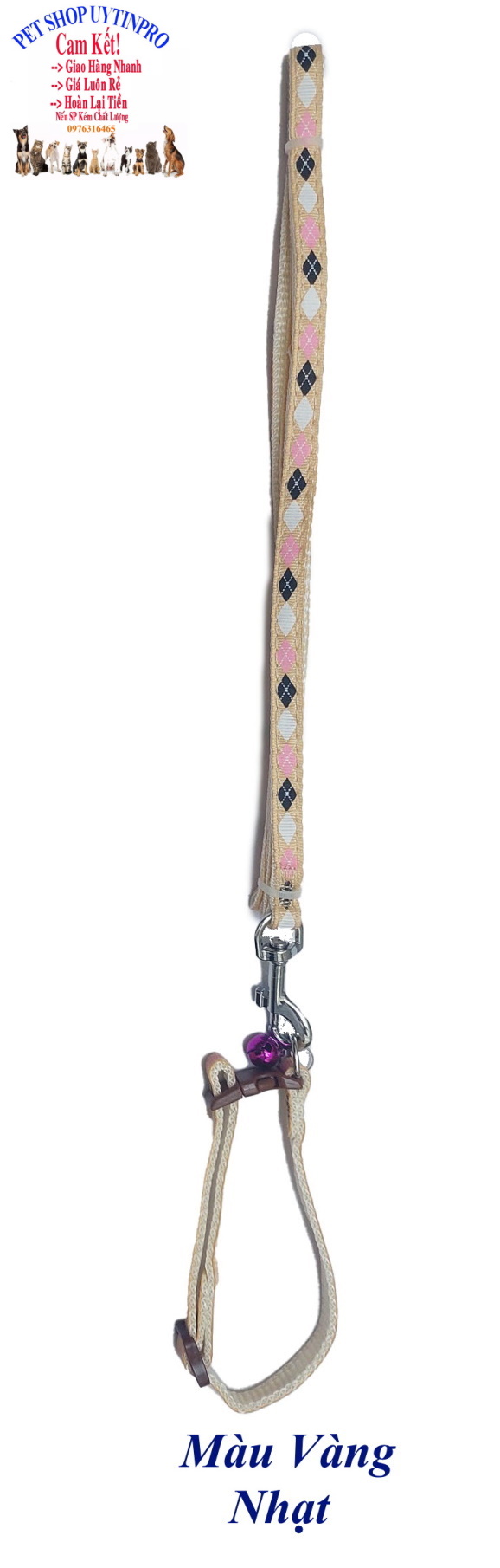 Vòng cổ làm bằng vải dù bện có độ bền cao, ít bám bụi, màu sắc nổi bật sinh động Vòng cổ có phần nút tháo bật dễ dàng tiện lợi, dây dắt dài 1m2