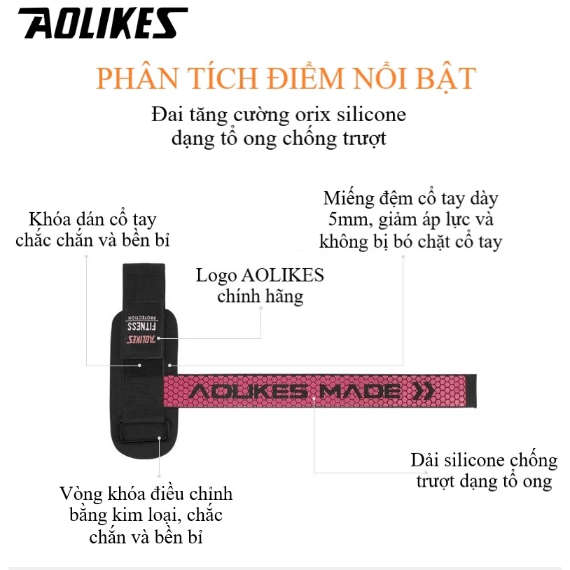 Dây Kéo Lưng Tập Gym Kết Hợp Quấn Cổ Tay Aolikes Lifting Straps (1 Đôi)dây kéo lưng aolike