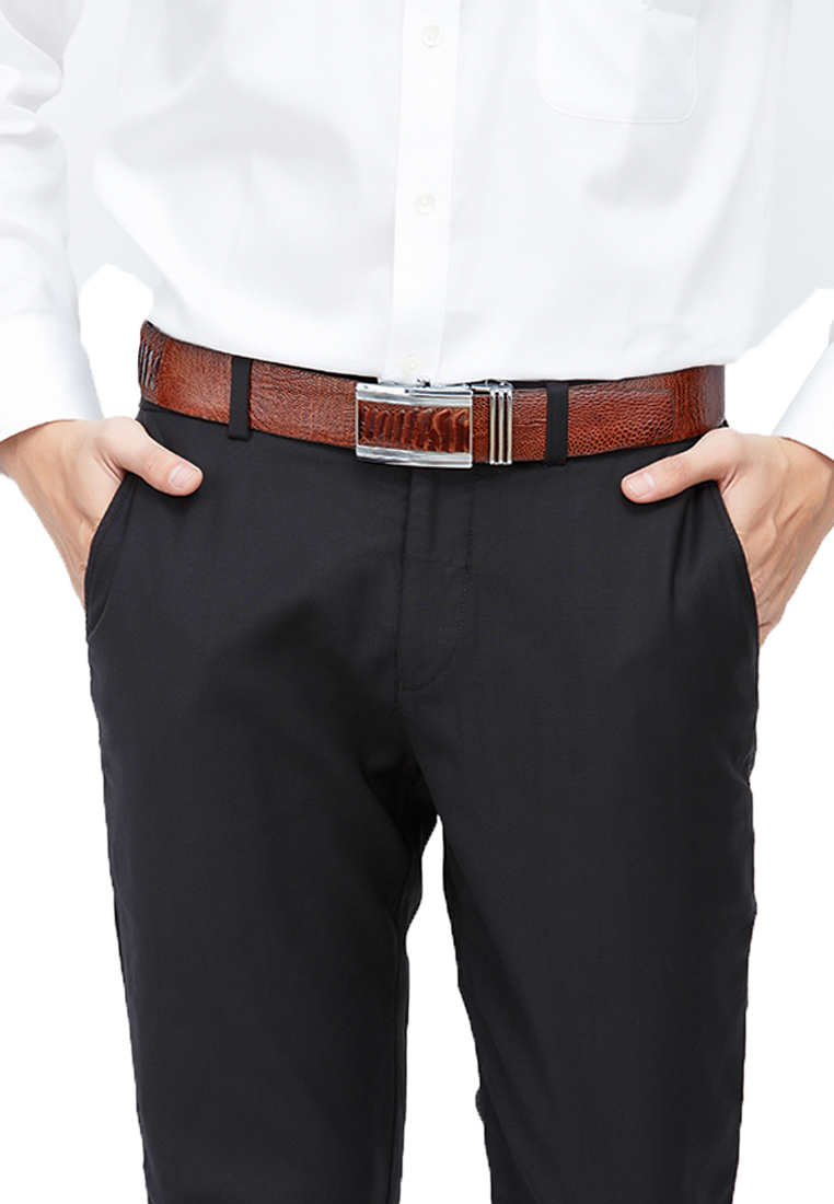 Dây nịt/Thắt lưng nam da bò Huy Hoàng vân cá sấu màu nâu 4118