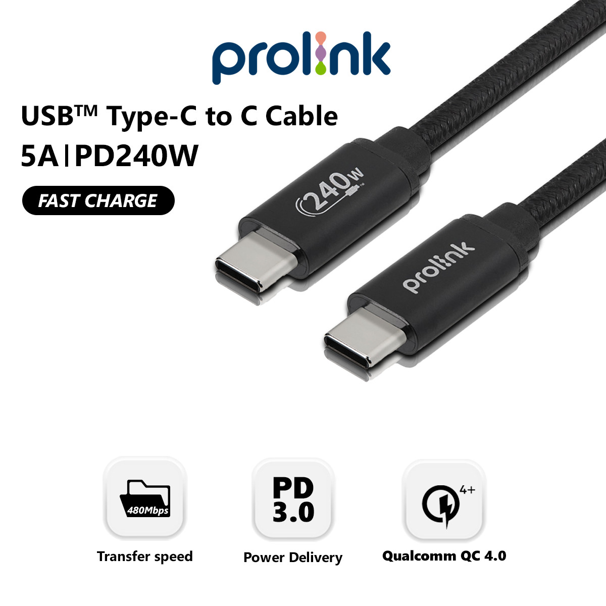 Dây sạc type C to C PROLiNK GCC_240_02 dài 2M, sạc siêu nhanh 240W với chuẩn PD 3.1, truyền dữ liệu tốc độ cao 480Mbps