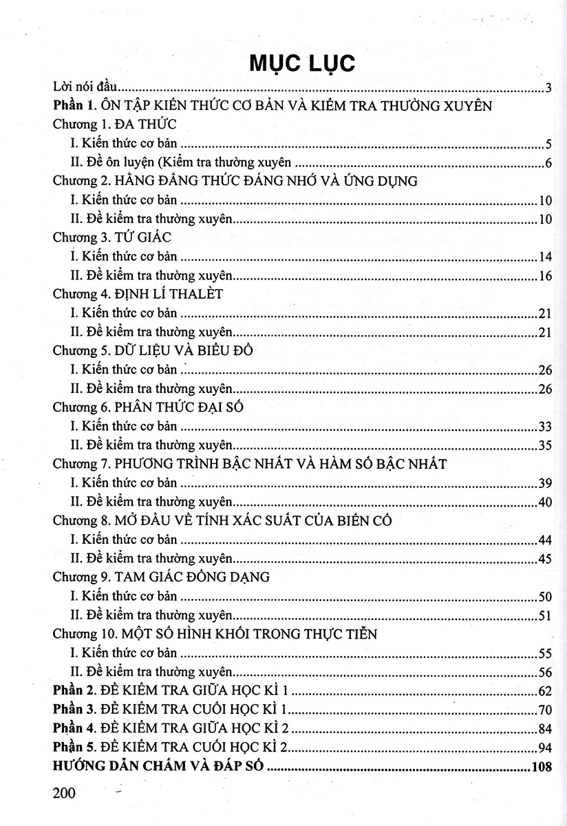 Sau một năm thực hiện Chương trình giáo dục phổ thông mới, với phương châm là giúp học sinh phát triển phẩm chất và năng lực vừa phải mở mang kiến thức vừa phải rèn luyện kĩ năng. Quý thầy cô và các em học sinh đã từng bước tiếp cận nội dung và phương pháp mới. Đồng hành cùng quý thầy cô và các em học sinh, tác giả tiếp tục biên soạn cuốn sách “Đề kiểm tra Toán 8” với hi vọng sẽ là tài liệu tham khảo thiết thực cho quý thầy cô và các em học sinh rèn luyện năng lực theo hướng phát triển.