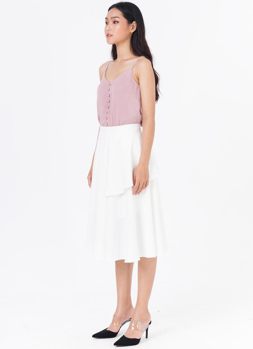 Áo 2 Dây với hàng cúc bọc tạo điểm nhấn trẻ trung, nữ tính. Áo có thể phối theo nhiều phong cách, với quần sóc hay quần tây cá tính, hoặc với chân váy xoè