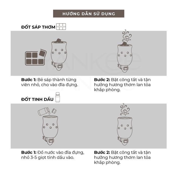 THÔNG TIN SẢN PHẨM - Đèn khuếch tán hương thơm sử dụng bóng đèn Edison để làm sáp ấm lên và tan chảy trong đĩa, từ đó lan tỏa hương thơm trong không khí. -